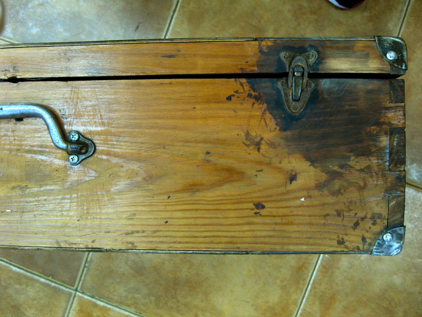 Lleva un tratamiento anticarcoma, se ha recuperado el dibujo que no estaba perdido totalmente, los herrajes van pintados en negro y el acabado es con un tono prácticamente igual al que tenía y va rematada con cera de abeja.